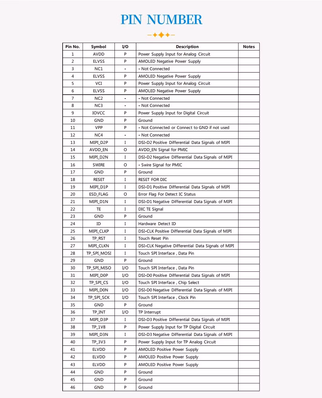 Tipo de interfaz MIPI/SPI Dirección de visualización 89/89/89/89
